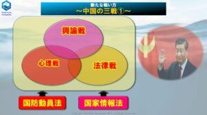 さらに中国が実施する「三戦(輿論戦・心理戦・法律戦)」